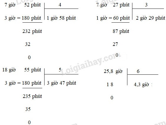 Giải bài tập 1, 2, 3 trang 56, 57 VBT toán 5 bài 127 : Chia số đo thời gian cho một số với lời giải chi tiết và cách giải nhanh, ngắn nhất