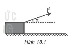 Một cái hòm khối lượng m = 15 kg đặt trên sàn nhà. Người ta kéo hòm bằng một lực \(\overrightarrow F \) hướng chếch lên trên và hợp với phương nằm ngang một góc α = 20o như Hình 18.1. Hòm chuyên động đều trên sàn nhà. Tính độ lớn của lực \(\overrightarrow F \). Biết hệ số ma sát trượt giữa hòm và sàn nhà là 0,3. Lấy g = 9,8 m/s2.
