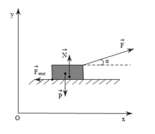 Theo định luật II Newton, ta có: \(\overrightarrow F + \overrightarrow P + \overrightarrow N + \overrightarrow {{F_{mst}}} = m\overrightarrow a \).