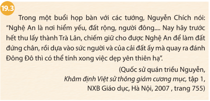 – Dùng Nghệ An làm đất dừng chân, dựa vào sức người, của cải ấy để đánh Đông Đô.