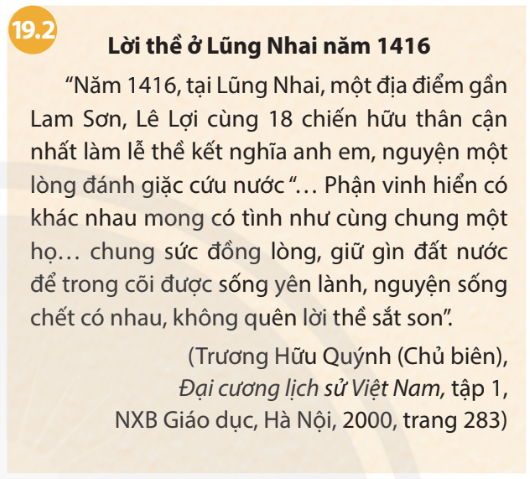 Vì sao anh hùng hào kiệt khắp nơi tụ về Lam Sơn? Mục đích của họ là gì? Đọc thêm tư liệu 19.2 cho câu trả lời của em.
