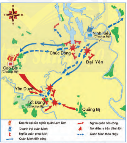 – Nghĩa quân mai phục ở Tốt Động, Chúc Động. Quân Minh rơi vào trận địa, bị phục kích, tổn thất nặng nề.