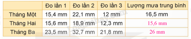 Lượng mưa trung bình = tổng lượng mưa 3 lần đo : 3