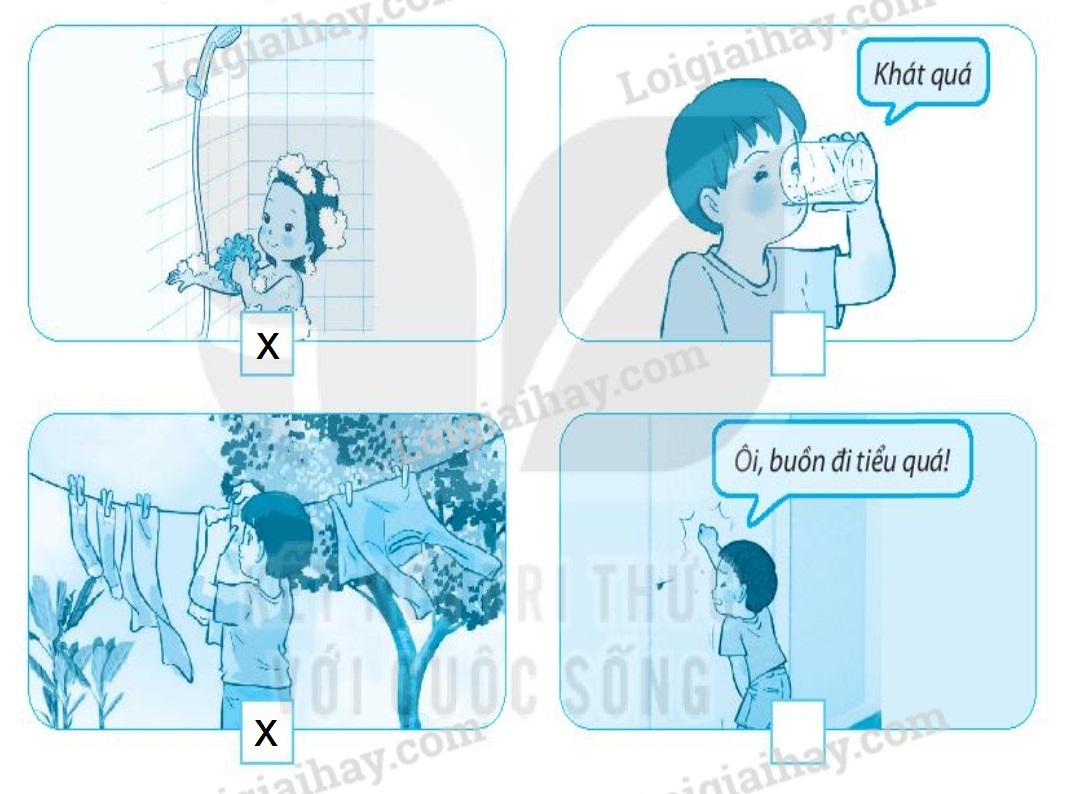 Đánh dấu x vào trước ô trống dưới các hình thể hiện những việc nên làm để chăm sóc, bảo vệ cơ quan bài tiết nước tiểu.