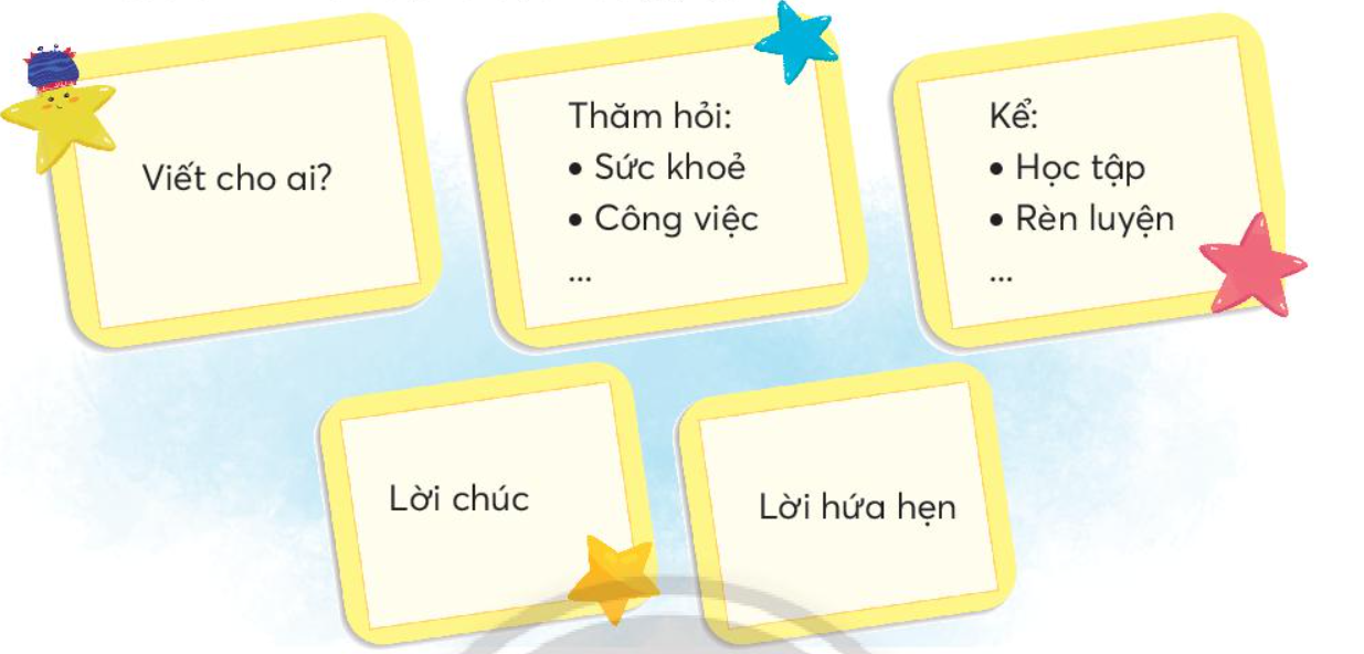 Em hãy viết thư cho người thân để thăm hỏi và kể về việc học tập, rèn luyện của em khi lên lớp Ba dựa vào gợi ý: