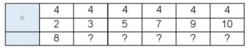 Tính nhẩm dựa vào bảng nhân 4 rồi viết kết quả còn thiếu vào ô trống.