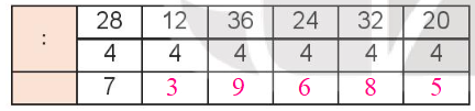Tính nhẩm dựa vào bảng chia 4 rồi điền kết quả còn thiếu vào chỗ trống.