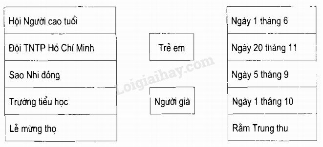 Em hãy nối những từ ngữ có liên quan đến người già hoặc trẻ em với hai ô chữ “Trẻ em” và “Người già” cho phù hợp