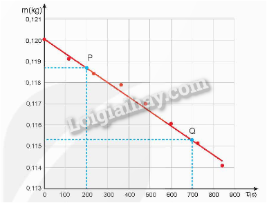 – Vẽ đường thẳng đi gần các điểm thực nghiệm nhất (tham khảo Hình 6.1). Chọn hai điểm P, Q tuỳ ý trên đồ thị, xác định giá trị khối lượng mP , mQ và thời gian τP, τQ tương ứng.