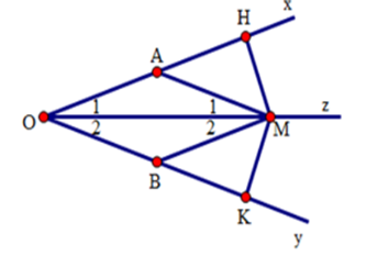 \(\widehat {{O_2}} = \widehat {{O_1}}\)(do $Oz$ là tia phân giác của góc $xOy$)