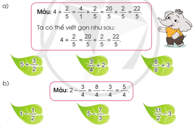 Ta có thể viết các số tự nhiên dưới dạng phân số, sau đó thực hiện phép cộng, phép trừ hai phân số như thông thường.