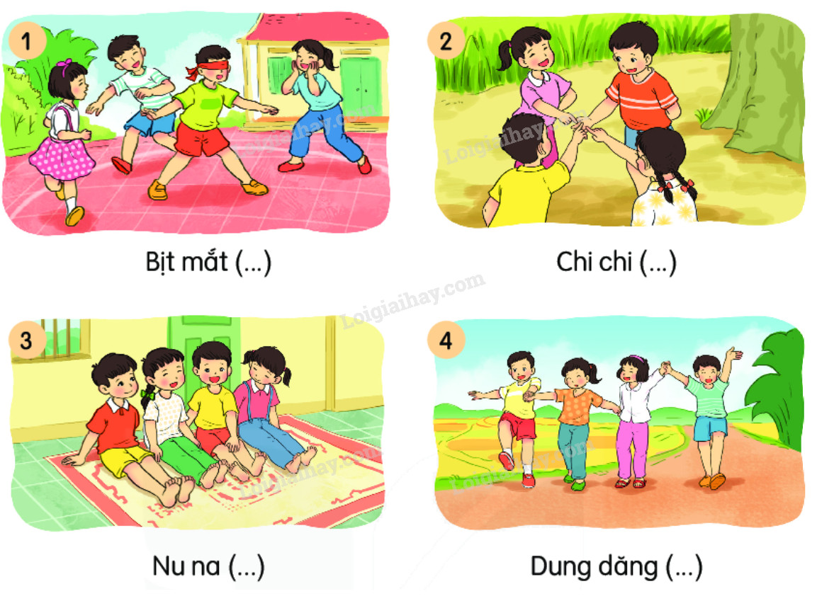 Câu 2: Dựa vào tranh và gợi ý dưới tranh, nói tên các trò chơi dân gian:
