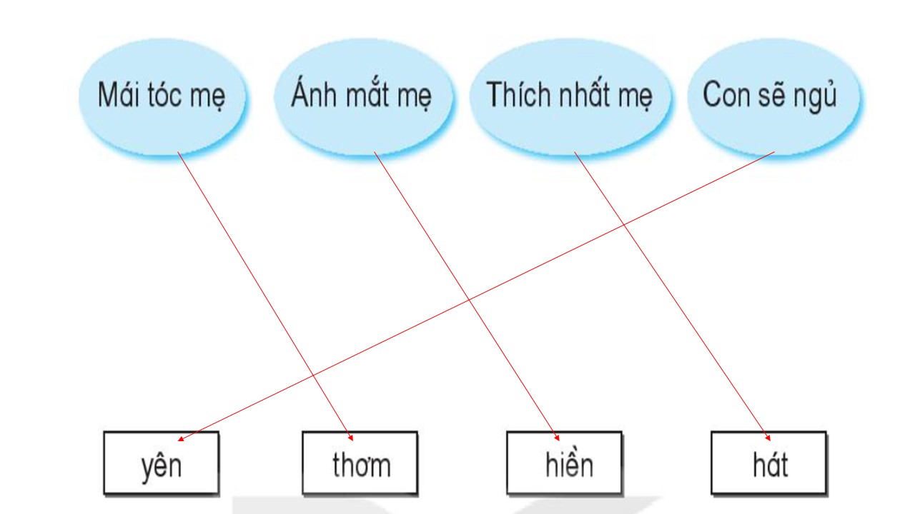 Tìm và nối từ thích hợp cho các câu hát sau