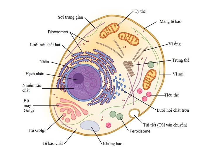 Trong chương trình học, em được tìm hiểu về 10 loại bào quan phổ biến nhất trong tế bào đó là: nhân, lưới nội chất, ribosome, ty thể, lục lạp, trung thể, bộ máy Golgi, không bào, lysosome, peroxisome.