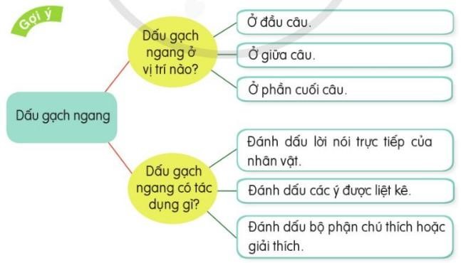 – Vị trí của dấu gạch ngang: ở đầu câu và ở giữa câu