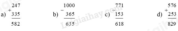 – Cộng hoặc trừ các chữ số thẳng cột lần lượt từ phải sang trái