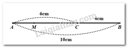 Vì \(M\) nằm giữa \(A\) và \(C\) nên \(AM + MC = AC \Rightarrow MC = 6 – 4 = 2\left( {cm} \right)\)