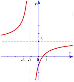Đồ thị hàm số có TCĐ \(x = – 1\) và TCN \(y = 2\) nên C đúng.