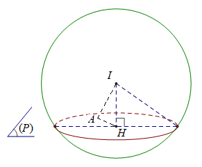 – Nhận xét mối quan hệ giữa diện tích hình tròn với khoảng cách từ tâm I đến (P).