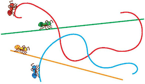 Bạn kiến nào bò theo đường thẳng?