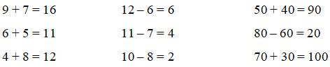 44 + 48                      68 – 17                      80 – 25                      31 + 9