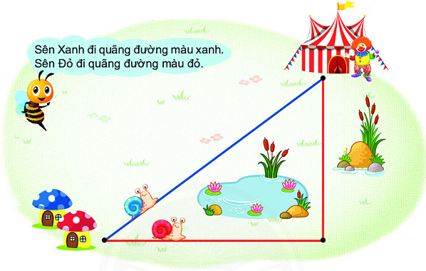 b) Quãng đường Sên Xanh đi ngắn hơn quãng đường Sên Đỏ đi bao nhiêu xăng-ti-mét?