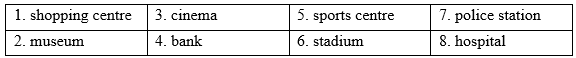 • museum        • shopping centre        • bank           • stadium         • sports centre             • cinema