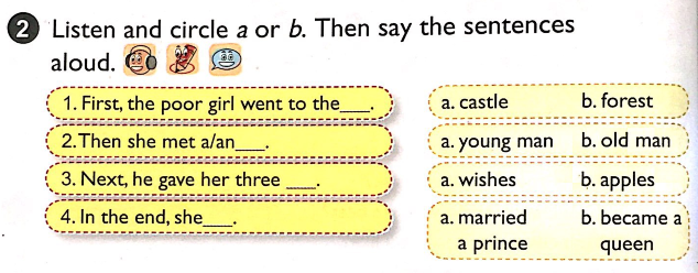(Nghe và khoanh tròn a hoặc b. Sau đó đọc lớn những câu sau.)