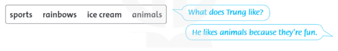 – What does Trung like? (Trung thích cái gì?)