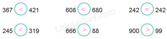 So sánh các số có ba chữ số rồi điền dấu thích hợp vào ô trống.