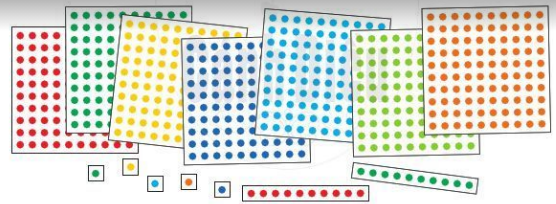 7 tấm hình vuông, mỗi tấm gồm 100 chấm tròn.
