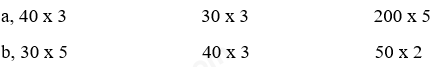 b) 30 x 5 = 150                     40 x 3 = 120                 50 x 2 = 100