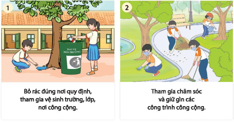 – Vứt rác đúng nơi quy định, tham gia vệ sinh trường lớp, nơi công cộng