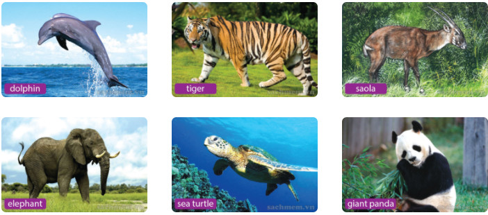 (Hổ, sao la, voi, rùa biển và gấu trúc nằm trong danh sách các loài có nguy cơ bị tuyệt chủng.)