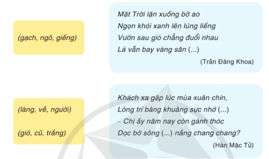 Chọn những tiếng trong ngoặc đơn phù hợp với chỗ trống (…). Từ đó, xác định cách gieo vần ở mỗi khổ thơ.