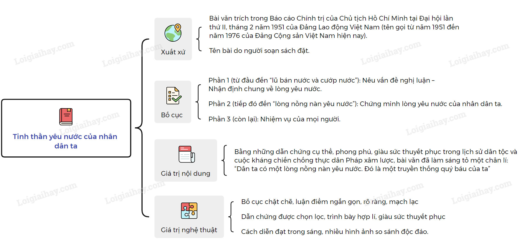 Sơ đồ tư duy văn bản Tinh thần yêu nước của nhân dân ta: