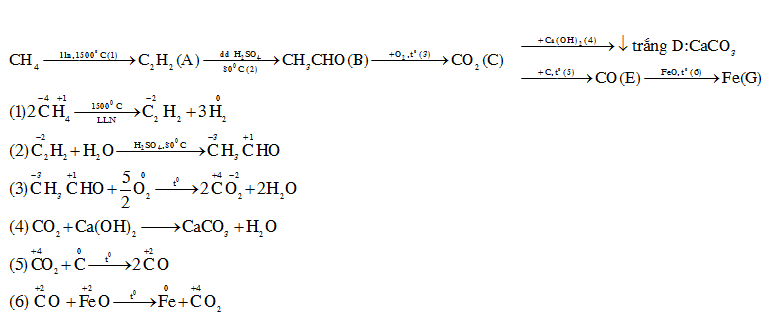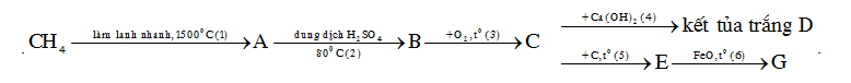2CH4 \(\xrightarrow[{lam\,lanh\,nhanh}]{{{{1500}^o}C}}\) C2H(axetilen) + 3H2