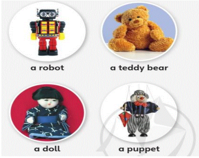 *Vẽ hình về những món đồ chơi (robot, teddy bear, doll, puppet…)