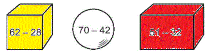 a) Ta có 62 – 28 = 34                       70 – 42 = 28               51 – 32 = 19