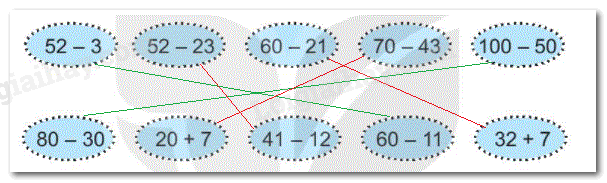 20 + 7 = 27                  41 – 12 = 29              60 – 11 = 49