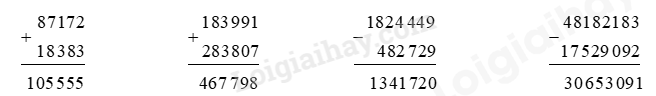 – Cộng hoặc trừ lần lượt từ phải sang trái
