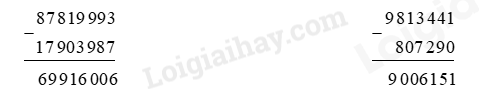 Đặt tính rồi tính 87 819 993 – 17 903 987 Hoá đơn nào tính sai giá tiền ?