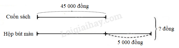 Bảo Ngọc mua một cuốn sách tô màu và một hộp bút màu. Giá của cuốn sách đó là 45 000 đồng. Giá của hộp bút màu nhiều hơn giá của cuốn sách là 5 000 đồng. Hỏi Bảo Ngọc cần trả cho cửa hàng bao nhiêu tiền?