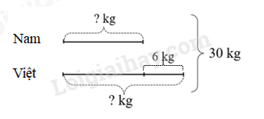 Trong dịp “Kế hoạch nhỏ” vừa qua, Nam và Việt đã quyên góp được 30 kg giấy vụn. Nam quyên góp ít hơn Việt 6 kg giấy vụn. Hỏi mỗi bạn đã quyên góp bao nhiêu ki-lô-gam giấy vụn?