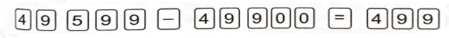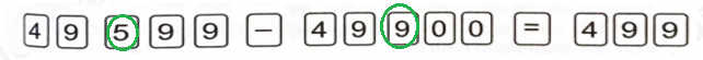 Phép tính đúng là: 49 999 – 49 500 = 4 99