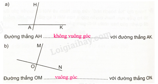 – Viết vuông góc hoặc không vuông góc vào chỗ chấm cho thích hợp.