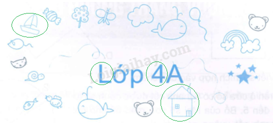 Khoanh vào những hình ảnh chứa hai đoạn thẳng vuông góc có trong bức tranh dưới đây của các bạn học sinh lớp 4A.