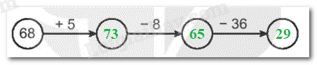 Tính nhẩm kết quả các phép tính theo chiều mũi tên rồi điền số thích hợp vào ô trống.