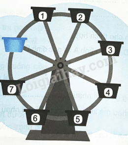 b) Nam đặt một viên phấn vào ca-bin ghi số 3. Biết thanh nan hoa nối với ca-bin đựng phấn vuông góc với thanh nan hoa nối với ca-bin đựng xúc xắc.
