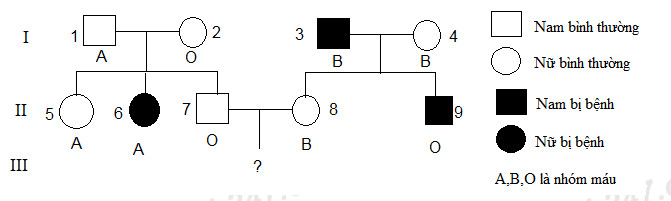 4. Nếu người số 6 kết hôn với người số 9 thì có thể sinh ra người con mang nhóm máu AB